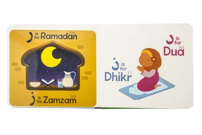 Each letter has been paired with an everyday Islamic or Arabic wordillustrated with cute pictures.This is a board book with pages made from thick card, making them durable against the tugs and tears of baby hands.Â