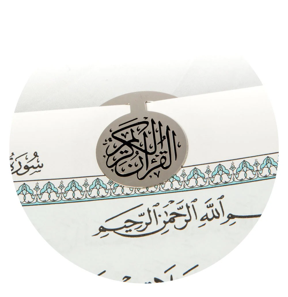 Thereâs something special about the Quran Clip. If used often enough with the right book, youâre guaranteed to receive the best guidance on earth. Quran Clip is an elegant metallic Quran bookmark, available in a gold and silver finish, fit for the regular reciter that we all aspire to be. It encircles the famous 'Al-Quran Al-Kareem (The Noble Quran)' calligraphic emblem at its core and measures 3.5cm in diameter.Â